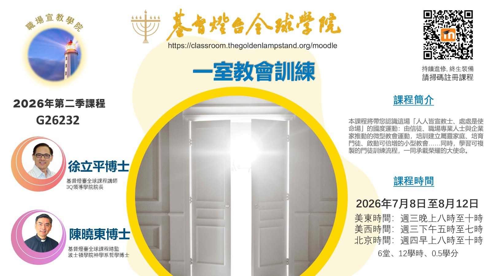 職場專業人士與企業家推動的微型教會運動:在日常生活、 工作現場與商業環境中,建立屬靈家庭、培育門徒、 啟動可倍增的小型教會——不靠建築,不靠活動, 而是靠福音在關係網絡中的自然擴散。 本研討會將帶您認識這場「人人皆宣教士、處處是使命場」的國度運動,並學習簡單可複製的門徒訓練流程。 * 幫助你在日常人際網絡中啟動門徒訓練* 建立真正能倍增的微型教會* 系統化擴展你的門徒訓練與植堂過程。誰應該參加?